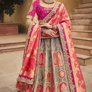 Royal Pastel Green & Pink Bridal Lehenga with Intricate Embroidery