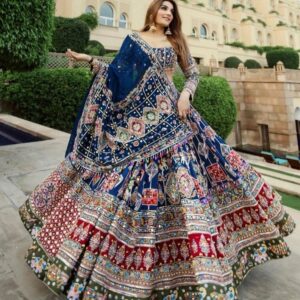 Royal Blue Multi-Color Mirror Work Lehenga Choli